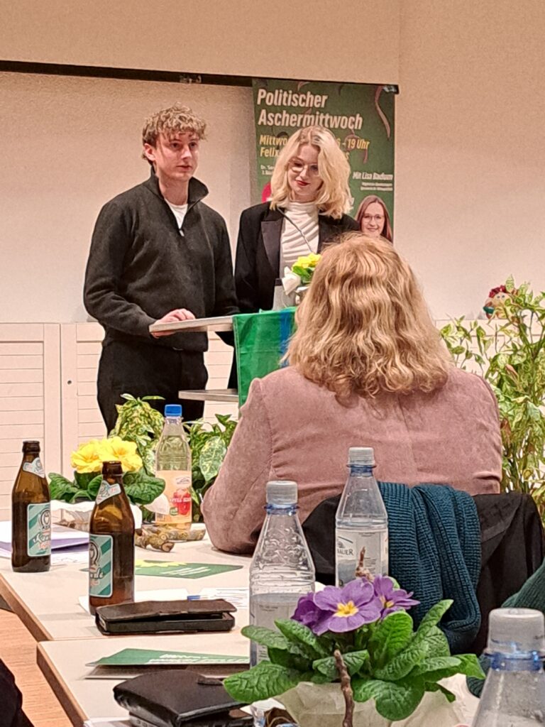 Lilli Grosch und Lars Mantel, Spitzenkandidatinnen der GRÜNEN JUGEND Würzburg sprachen über den rauer werdenden Ton in der Gesellschaft: alt gegen jung, Stadt gegen Land – als wäre Spaltung ein politisches Programm. Doch das ist sie nicht.