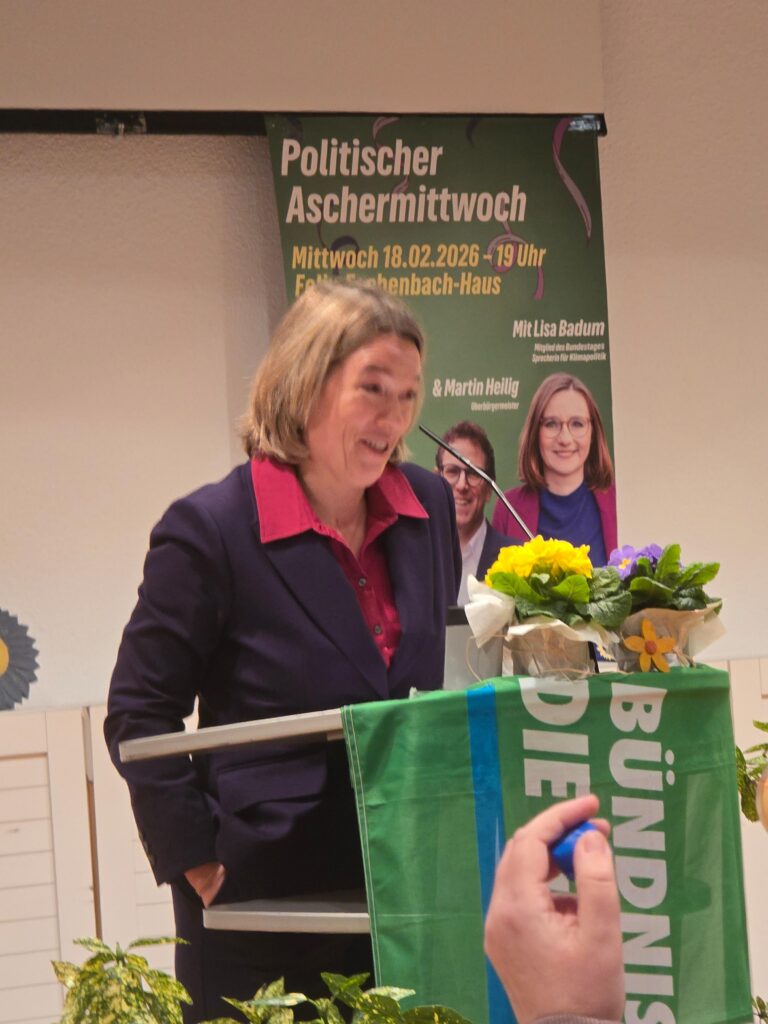 Unser Politischer Aschermittwoch stand ganz im Zeichen von Zukunft, Verantwortung und Zusammenhalt – mit Humor, aber vor allem mit klarer Haltung. Auf dem Podium: Dr. Sandra Vorlova (2. Bürgermeisterin und Spitzenkandidatin für die Kommunalwahl), Lars Mantel und Lilli Grosch (Grüne Jugend), Jessica Hecht (Kreisrätin und Kreisvorsitzende Würzburg-Land), Oberbürgermeister Martin Heilig, Lisa Badum (MdB) sowie Sven Winzenhörlein (Landratskandidat und Fraktionsvorsitzender im Kreistag).